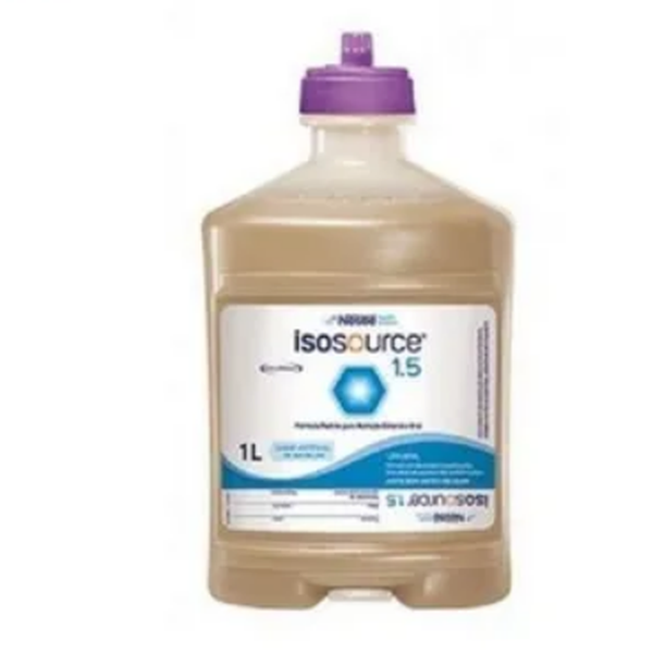 Isosource 1.5 é um alimento nutricionalmente completo para nutrição enteral ou oral, hipercalórico. Cada 1ml de Isosource 1.5 fornece 1,5 kcal. Sabor: Artificial de Baunilha. Osmolaridade: 320 mOsm/kg de água. Ingredientes: Água, maltodextrina, caseinato de sódio obtido do leite de vaca, óleo de canola, triglicerídeos de cadeia média, caseinato de cálcio obtido do leite de vaca, óleo de soja, citrato de potássio, fibra de soja, goma guar parcialmente hidrolisada, fosfato tricálcico, citrato de sódio, bitartarato de colina, vitamina C, cloreto de magnésio, óxido de magnésio, taurina, L-carnitina, cloreto de sódio, sulfato ferroso, vitamina E, sulfato de zinco, D-pantotenato de cálcio, niacinamida, gluconato de cobre, vitamina B6, sulfato de manganês, vitamina B1, vitamina B2, betacaroteno, vitamina A, cloreto de cromo, ácido fólico, iodeto de potássio, molibdato de sódio, selenito de sódio, biotina, vitamina K, vitamina D, vitamina B12, emulsificantes lecitina de soja e mono e diglicerídeos de ácidos graxos, aromatizante, estabilizante carragena, antiespumante polidimetilsiloxano e corante natural urucum.